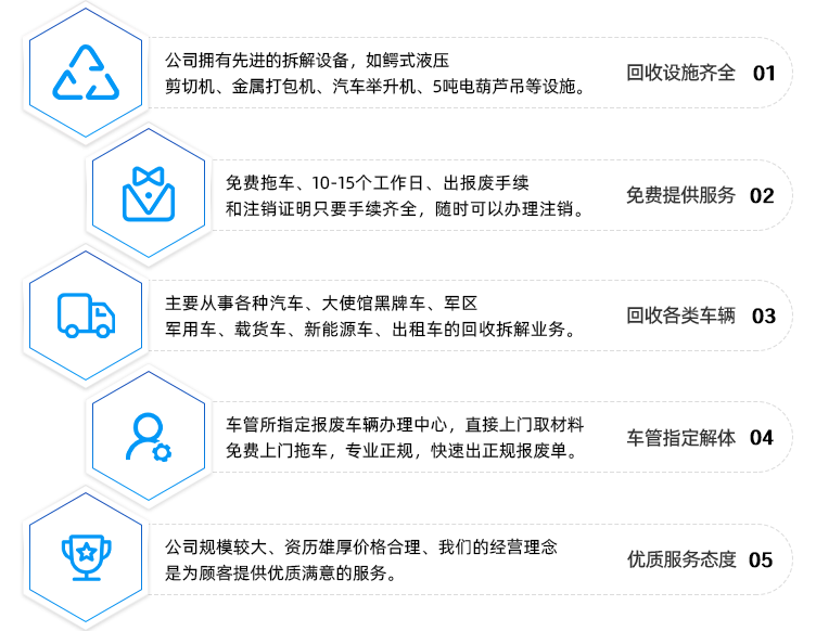 在办理重庆车辆报废过程中及时周到地为车主解决了种种困难,并且坚持上门服务,用我们的真心和真诚特别是高质量的服务得到了广大新老客户的良好口碑和信任,成为重庆市多家国家机关及企事业单位的定点报废车辆解体厂,占有了相当高的报废汽车市场份额。在您办理重庆车辆报废解体的过程当中我们会耐心细致热情地为您解答问题,并提供免费上门拖车免费办理报废手续的优质服务,让您体验到重庆车辆辆报废一条龙服务,真正做到一个电话(18582584951)全程办理。